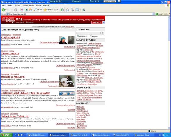 Od 3. januára 2005 sa v printovej verzii nachádzal jeden krátky blog.